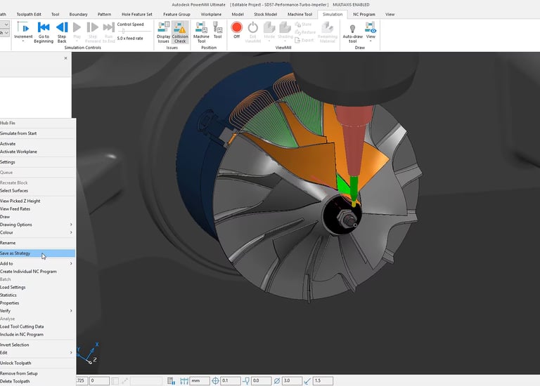 Master advanced 5-axis machining techniques for complex components such as impellers, blades, and multi-sided parts using Autodesk PowerMill.